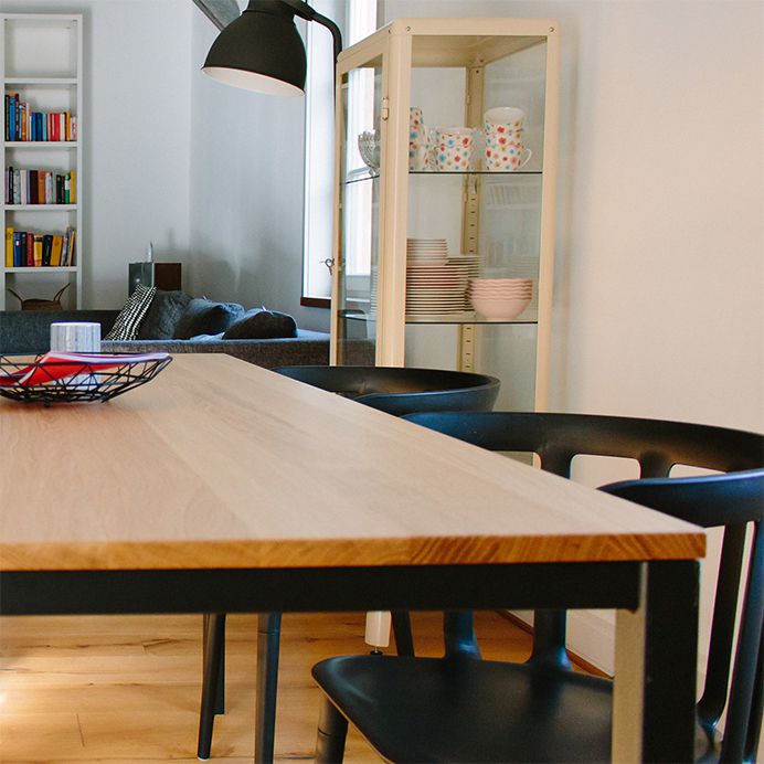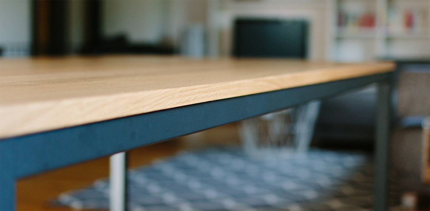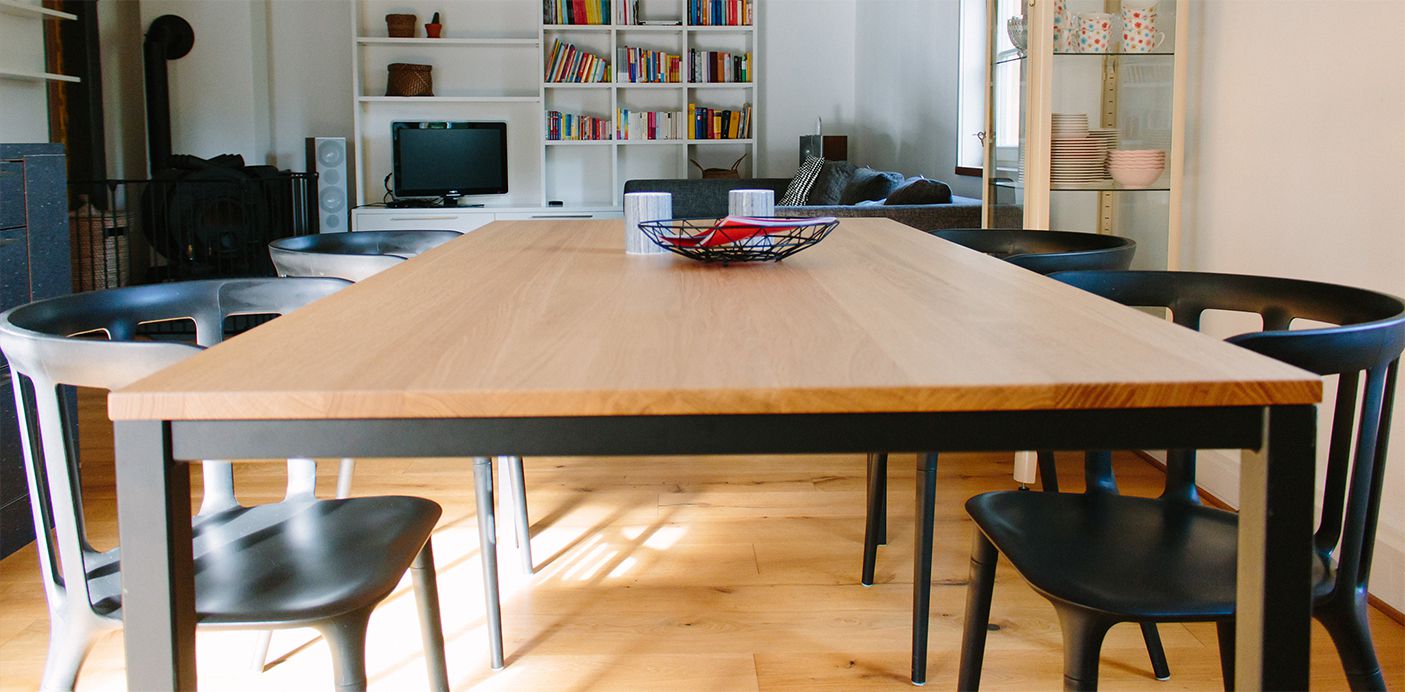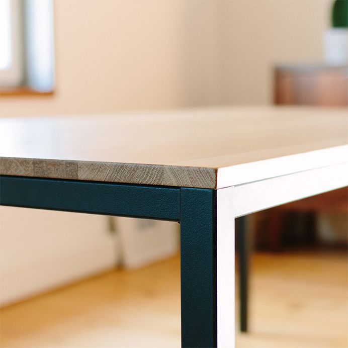Esstisch in Eiche mit Pulver beschichtetem Stahlgestell